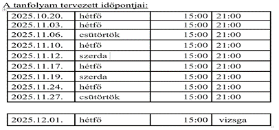 A képzésekkel kapcsolatban felvilágosítást ad Zsigó György, +36 30 94 74 376 és zsigogy@gmail.com